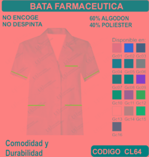 La bata farmacéutica 60% algodón 40% poliéster está fabricada con material de primera calidad otorgando comodidad, cuenta con múltiples bolsillos para mantener cerca los objetos para desempeñar un buen labor, la bata farmacéutica no encoge ni se estira, cuenta con costuras reforzadas asegurando su durabilidad, por su composición es ideal para el uso continuo, se puede fabricar en cualquier color de nuestro catalogo, puede llevar tus logotipos bordados, ideal para ambientes templados.