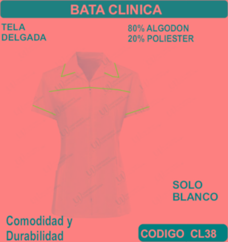La filipina clínica 80% algodón 20% poliéster está fabricada con material de primera calidad otorgando comodidad, la bata medica no encoge ni se estira, cuenta con costuras reforzadas asegurando su durabilidad, por su composición es ideal para el uso continuo,solo se fabrica en color blanco, puede llevar tus logotipos bordados, ideal para ambientes templados.