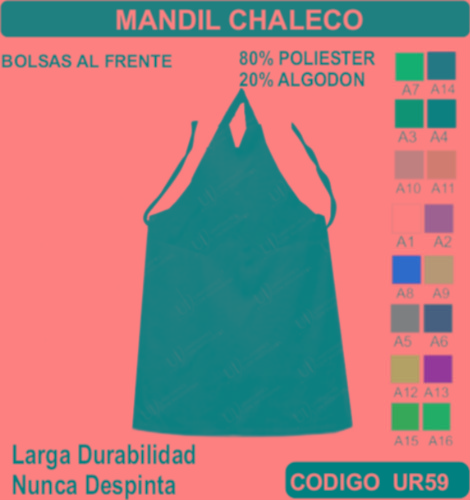 El Mandil para Mesero se fabrica en Tela de primera calidad; El Mandil para Mesero no encoge y tiene costuras reforzadas; El Mandil para Mesero está fabricada para uso continuo; El Mandil para Mesero está disponible en todas las tallas; El Mandil para Mesero se puede fabricar en cualquier color que esté disponible dentro de nuestro catálogo de telas. El Mandil para Mesero se envía a cualquier parte de la República Mexicana. En todos los uniformes que vendemos está garantizada su inversión ya que incluye un seguro por robo o extravió. El pedido mínimo es de 15 uniformes. Los precios incluyen: Uniforme (producto), Bordado o estampado, Planchado, Empaquetado individual, Envió a domicilio, Seguro por Robo o Extravió. El TIEMPO DE ENTREGA es de la siguiente manera: De 15 a 50 uniformes 1 semana, de 51 a 300 uniformes 2 semanas, de 301 a 1000 uniformes 3 semanas, de 1001 a 2000 uniformes 4 semanas, para pedidos mayores favor de verificar el tiempo de entrega antes de hacer su pedido. Pedidos Urgentes y tallas XXL –XXL tienen un costo adicional. El tiempo de entrega Aplica sumando el total de su pedido.