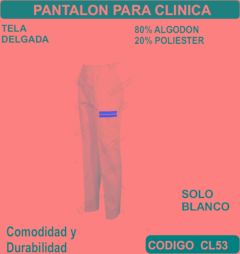 El pantalón para clínica 80% algodón 20% Poliéster está fabricado con una gabardina de primera calidad otorgando comodidad, el pantalón para clínica no encoge ni se estira, cuenta con costuras reforzadas asegurando su durabilidad, por su composición es ideal para el uso continuo, está dieseñada con un tela delgada para proporcionar comodidad al movimiento, puede llevar tus logotipos bordados, ideal para ambientes calurosos.